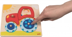 Puzzle-ul din lemn de tip încastrat, cu imaginea unui tractor, este prima alegere ideală pentru cei mai mici. Datorită contururilor frezate precis pe suport, copiii găsesc ușor locul potrivit pentru fiecare piesă și finalizează cu bucurie imaginea. Execuția de calitate a mărcii GOKI garantează durabilitate și joacă în siguranță.
