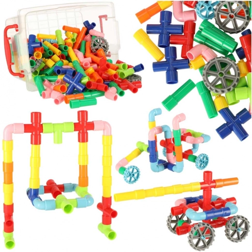Explorează creativitatea copilului tău cu setul de blocuri educative ce imită tuburile de apă. Acest set colorat de 84 de piese permite construirea unor structuri uimitoare atât în casă, cât și în aer liber.