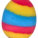 Mingea din cauciuc în formă de ou aduce bucurie datorită designului său unic și culorilor vii care îndeamnă la mișcare.