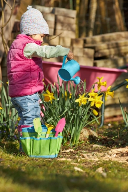 Geanta practică de grădinărit are suficient spațiu atât în interior, cât și în buzunare – puteți depozita cu ușurință nu doar lopățica, hârlețul, grebla și stropitoarea, ci și alte echipamente precum pălăriuța, șorțulețul sau semințele. Datorită construcției robuste, setul este pregătit pentru utilizare zilnică în grădină și pe terenul de joacă.