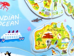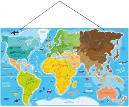 Această hartă magnetică a lumii este un instrument excelent pentru copii să învețe despre țări și continente într-un mod jucăuș. Stratul inferior constă dintr-o hartă politică simplificată, unde copiii atașează piesele puzzle. Ei învață poziția geografică și caracteristicile fiecărei țări, inclusiv fauna acestor regiuni.