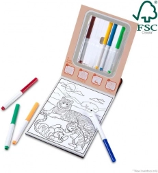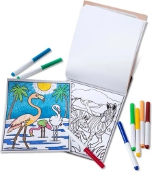 Carte de colorat compactă cu suporturi integrate pentru carioci multicolore, soluția ideală pentru distracție în călătorii și acasă.