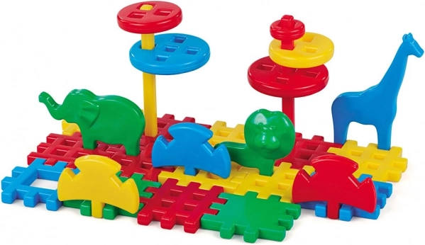 Setul ZOO le permite copiilor să creeze un mic parc zoologic cu animăluțe precum elefant, leu, girafă și rinocer. Datorită îmbinării simple, construcția este intuitivă și distractivă – perfectă pentru dezvoltarea coordonării mână–ochi și a gândirii logice.