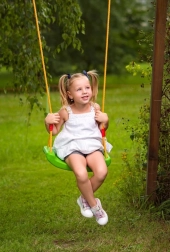 Practic și sigur, leagănul tip scaun WOODY este o alegere excelentă pentru grădină, pergolă și locul de joacă. Șezutul lat, de aproximativ 42 × 17 cm, oferă sprijin stabil și confortabil. Lungimea ajustabilă a frânghiilor 1,3–2,1 m permite adaptare ușoară la diferite înălțimi de prindere.