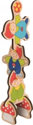Goki puzzle de lemn și model 3D Pitici combină distracția creativă cu elemente educative. Jucăria include o bază de lemn pe care copiii pot plasa cu ușurință piesele individuale folosind rame securizate. În plus, se pot distra prin crearea unei versiuni spațiale cu toate personajele și obiectele incluse în jucărie.