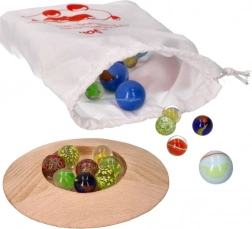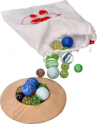 Luați bilele preferate oriunde, cu săculețul practic din bumbac. Acest set include 31 de bile de sticlă în diverse culori și o adâncitură din lemn, ceea ce îl face o alegere ideală pentru jocuri de interior. Susține creativitatea și dezvoltă motricitatea fină a copiilor. Cine va fi cel mai îndemânatic și va introduce cele mai multe bile în adâncitură?