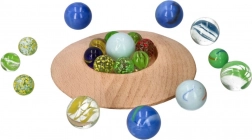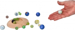 Setul conține 31 de bile de sticlă de culori și dimensiuni diferite pentru un joc variat.