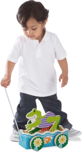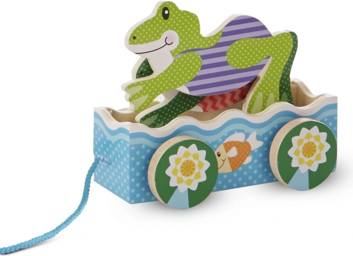 Jucăria de tras din lemn în formă de broască este perfectă pentru distracție și dezvoltarea abilităților motorii ale copiilor. Cu un șnur de 64 cm, este ideală pentru joaca activă.