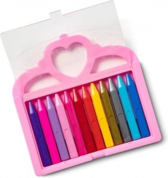 Susține creativitatea copiilor cu setul colorat de creioane cerate, care conține 12 nuanțe intense pentru colorat, conturat și primele încercări artistice. Etuiul compact, cu mâner în formă de inimă/coroniță, păstrează totul laolaltă, astfel încât creioanele nu se pierd și sunt mereu la îndemână.