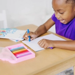 Paleta largă de culori îi inspiră pe cei mici să creeze, să amestece nuanțe și să-și dezvolte motricitatea fină și creativitatea.