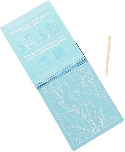 Acest caiet de zgâriat cu motive din viața marină oferă copiilor ore nesfârșite de distracție creativă. Este suficient să zgârie ușor stratul superior cu stylusul special din lemn, iar scenele colorate cu pești, țestoase și căluți de mare încep să apară treptat. Activitatea este intuitivă, motivantă și nu necesită vopsele sau adezivi.