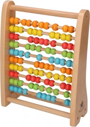 Este construit pe un cadru robust din lemn, care asigură durabilitate și stabilitate, fiind astfel ideal pentru utilizare frecventă acasă și în grădiniță. Mărgelele colorate fac mai ușoară înțelegerea relațiilor numerice și operațiilor matematice de bază.
