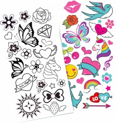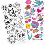 Setul de markere pentru tatuaje este ideal pentru micii artiști care doresc să își exprime stilul în siguranță și într-un mod jucăuș. Cu ajutorul șabloanelor, al markerelor cu sclipici și al autocolantelor decorative iau naștere motive temporare pline de culoare și strălucire.