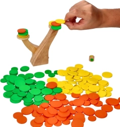 Joc de echilibru Copacul de Toamnă oferă o modalitate distractivă de a îmbunătăți coordonarea ochi-mână la copii. În acest pachet, veți găsi două structuri de copac și un zar cu puncte colorate. Copiii se vor distra plasând discurile colorate pe structura echilibrată a copacului și, în același timp, vor învăța să gândească strategic pentru a menține stabilitatea și a finaliza sarcina.