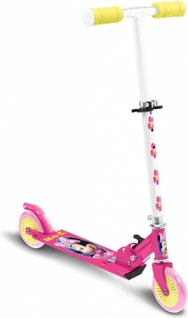 Trotineta se remarcă prin culoarea roz strălucitoare cu elemente galbene și frumoase imagini cu Minnie Mouse, care captează imediat atenția fiecărui copil.
