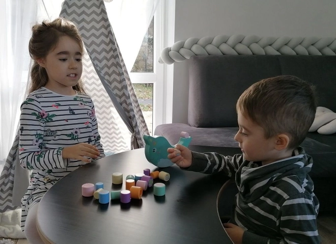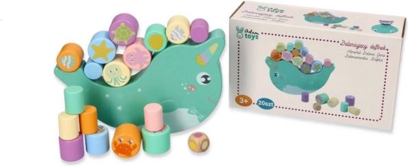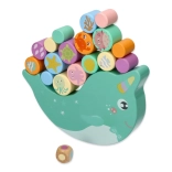 Descoperiți un joc de echilibru din lemn amuzant cu narval, în care copiii echilibrează cilindri multicolori cu motive de animale marine pe o bază tip balansoar. Scopul este să păstrezi echilibrul și să așezi piesele astfel încât narvalul să nu se răstoarne – un excelent antrenament pentru motricitatea fină, coordonarea ochi–mână și răbdare.