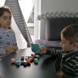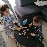 Copiii așază cilindri din lemn pe o bază care se leagănă, în formă de narval, și își antrenează motricitatea fină, coordonarea și simțul estimării. Fiecare mutare e o provocare pentru a păstra stabilitatea.
