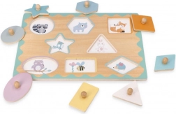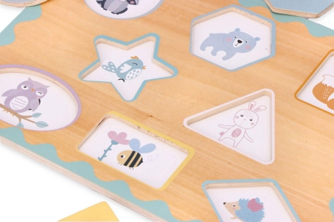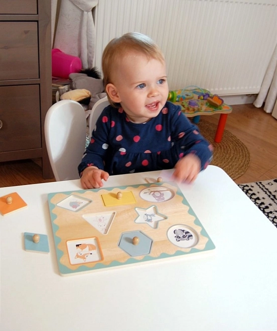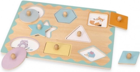 Descoperiți puzzle-ul din lemn, rezistent, cu butoni, în care fiecare piesă are locul ei exact. Formele clare, culorile pastelate delicate și temele simpatice cu animăluțe invită la joacă, în timp ce butonii practici de tip nasture facilitează prinderea chiar și pentru cei mai mici.