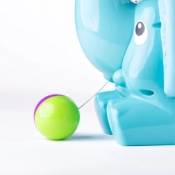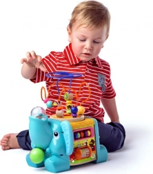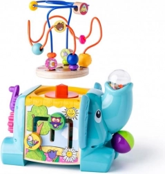 Elefantul interactiv în culori vii este conceput pentru a-i motiva pe copii să exploreze. Labirintul cu mărgele, rotițele, elementele glisante și angrenajele oferă numeroase moduri de a exersa degetele, prinderea și gândirea logică. Jucăria este stabilă, ușor de prins și invită la joacă repetată.