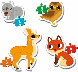Acest set „Primul meu puzzle” de la CLEMENTONI este o alegere ideală pentru prima familiarizare a copiilor cu puzzle-urile. Ilustrațiile vesele ale vulpii, cerbului, bufniței și veveriței, în culori vii, invită la asamblare și întăresc concentrarea și răbdarea.