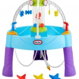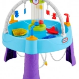 Masa este echipată cu diverse elemente, precum ținte rotative și cilindri cu apă, care încurajează copiii la joacă dinamică și dezvoltarea abilităților lor.