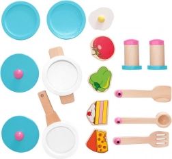 Oală, tigaie, capac, polonic, solniță, piperieră și alte detalii adaugă realism și varietate jocului de gătit. Totul este adaptat mâinilor copiilor.