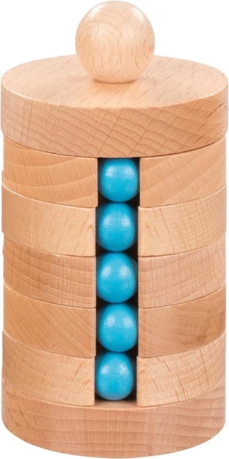 Descoperă o provocare logică ce distrează și dezvoltă. Turnul Babilonian cu bile de la GOKI este un puzzle din lemn în formă de cilindru, cu cinci straturi orizontale rotative. În fiecare strat se află bile în patru culori și o poziție liberă, care permite mutarea inteligentă a bilelor. Sarcina ta este să aliniezi culorile în coloane continue.