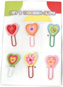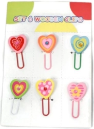Oferă documentelor, vederilor sau pachetelor un stil personal. Setul conține 6 cleme din lemn cu motive viu colorate de inimioare sau flori, care atrag prin culori și micul pietricel din centru. Datorită lungimii universale de aprox. 4 cm, se folosesc ușor acasă, la birou sau la școală.
