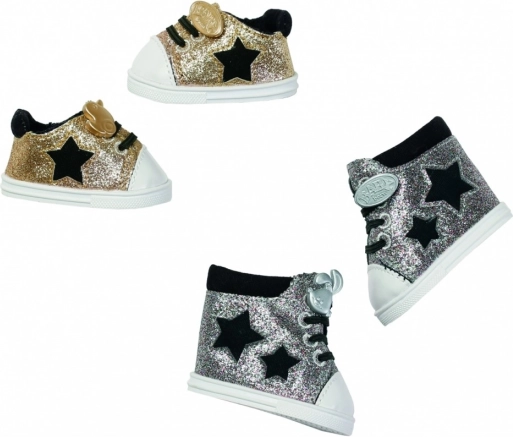 Fă fiecare pas al păpușii să strălucească cu adidașii la modă BABY BORN în nuanță aurie. Suprafața lucioasă cu glitter, detaliile contrastante și talpa moale asigură confort chiar și în timpul aventurilor de joacă prelungite. Un accesoriu grozav pentru toate micile stiliste care vor să ofere păpușilor lor stil, sclipire și originalitate.
