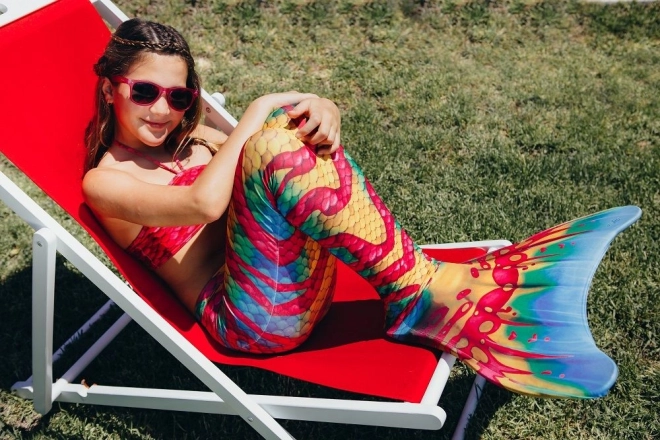 Transformă-ți copilul într-o ființă magică cu Costumul de sirenă Coral, care include o coadă colorată și o monoplută neagră pentru mai multă distracție la înot.