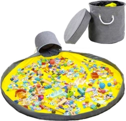 Practic: coș 2‑în‑1 cu covoraș de joacă pentru strângerea rapidă a cuburilor și jucăriilor în câteva secunde. Covoraș mare cu diametrul de 135 cm servește ca spațiu sigur de joacă și, datorită șnurului cu opritor, se transformă ușor într-un sac pentru transport. Rezistent la apă, cu mânere din frânghie robuste și margine înaltă a covorașului pentru a preveni căderea jucăriilor.