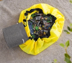Întindeți covorașul mare (Ø 135 cm), lăsați copiii să se joace, iar la final trageți de șnurul cu opritor – jucăriile se adună într-o clipă în coș.
