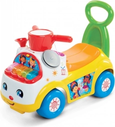 Pe panoul frontal găsești o claviatură cu două moduri: redarea a 5 melodii vesele de marș și joc liber pentru primele experimente muzicale. Practicul spațiu de depozitare sub șezut găzduiește mărunțișurile pe care micii șoferi vor să le aibă mereu la îndemână.
