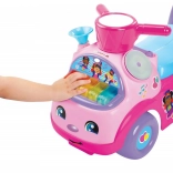 Trotineta roz fără pedale Fisher-Price pentru copii de 12–36 luni îmbină mersul pe jucărie, primele pasuri și redarea melodiilor. Oferă clapier cu sunete, spațiu de depozitare sub șea și mâner practic pentru sprijin la mers, dezvoltând motricitatea, coordonarea și imaginația.