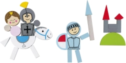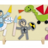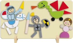 Tabla magnetică și suporturile mențin toate piesele la locul lor. Copiii își pot crea cu ușurință propriile scene medievale, pe care le pot modifica oricând.