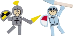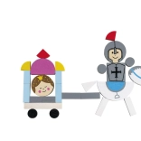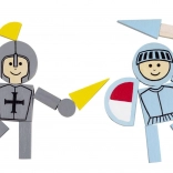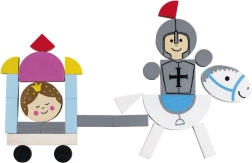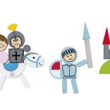 Piesele din lemn colorate, cu suprafață netedă, le permit copiilor să asambleze cavaleri, scuturi, sulițe și membre – ideal pentru dezvoltarea motricității și a imaginației.