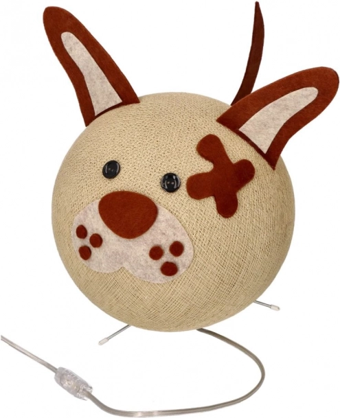 Această lampă decorativă în formă de cățeluș combină iluminarea funcțională cu un design adorabil pe care copiii îl vor iubi. Corpul textil rotund cu detalii din fetru pentru urechi și năsuc creează o lumină caldă, plăcută și servește totodată ca o decorațiune stilată.