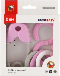 Acest set din plastic cu zornăitoare este conceput pentru bebeluși și ajută la dezvoltarea auzului, văzului și tactilului. Datorită zornăitului delicat și culorilor pastel plăcute, îi motivează în mod natural pe copii să descopere și să se joace. Forma acului de siguranță (lungime 12 cm) și a cifrei opt este ușor de ținut de către copii și sprijină exersarea sigură a prinderii.