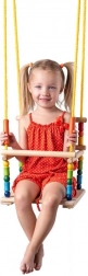 Acest leagăn din lemn aduce copiilor bucuria legănatului, iar părinților liniște datorită execuției de calitate și certificării CE. Scaunul cu dimensiuni de 30 × 30 cm este stabil și confortabil, în timp ce lungimea reglabilă a frânghiilor permite o adaptare ușoară diferitelor spații.