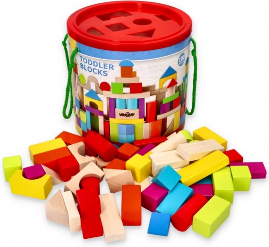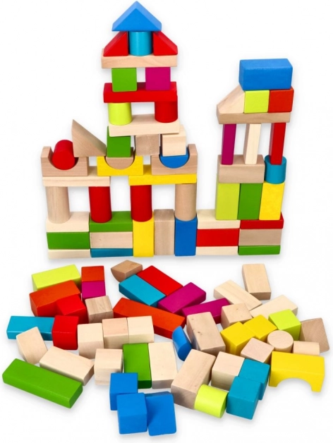 Bucurați-vă de ore întregi de distracție cu acest set de 100 de cuburi din lemn colorate. Excelent pentru construirea diverselor structuri și pentru a susține creativitatea copiilor. Formele variate și culorile vii, precum roșu, albastru, verde și galben, oferă posibilități nelimitate de joacă.