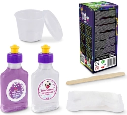 Setul Tuban Super Slime oferă o experiență unică în crearea de slime, care strălucește în întuneric. Este suficient să urmezi instrucțiunile și să creezi propriul tău slime violet, care arată grozav!