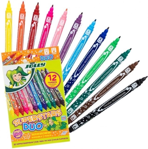 Descoperă creativitatea cu cariocile duble Superstars Duo, într-un set de 12 nuanțe vii. Fiecare cariocă are două vârfuri pentru linii precise și umplere uniformă, ideale atât pentru copii de la 3 ani, cât și pentru adulți. Datorită lungimii compacte de 17 cm, se țin confortabil în mână și încap ușor în penar. Certificarea CE garantează utilizarea în siguranță. Perfecte pentru școală, birou și proiecte creative acasă.