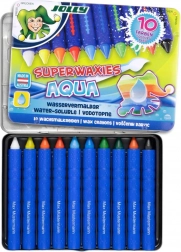 Creioane cerate AQUA rezistente la rupere, într-o cutie metalică practică, pentru micii creatori de la 3 ani. Oferă culori vii și intense, sunt rezistente la rupere și au certificare CE. Datorită dimensiunilor compacte de 14 × 10 cm, încap ușor în rucsac și penar.