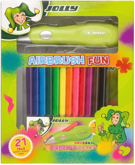 Pixul airbrush JOLLY transformă orice hârtie, carton sau textil într‑o creație originală. Datorită pulverizării electrice a culorii, obții tranziții fluide, umbriri și linii precise fără efort. Șabloanele amuzante cu litere, cifre și motive facilitează începuturile și stimulează imaginația copiilor.