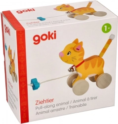 Această drăguță jucărie pisicuță din lemn de tras este ideală pentru a sprijini dezvoltarea motorie și echilibrul copiilor mici. Este dotată cu un clopoțel care gentil sună în timpul mișcării, adăugând atractivitate jucăriei.