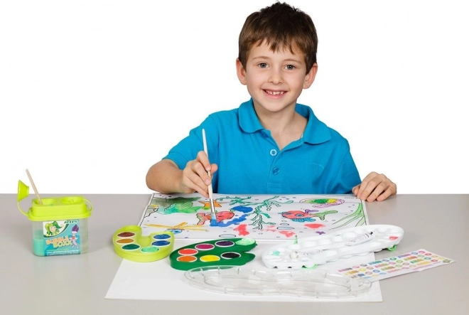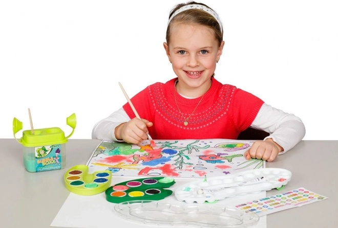 Descoperiți magia picturii cu acuarelele Jolly Twintabs! Acest pachet oferă o gamă variată de culori și pensule de calitate, care permit copiilor să-și exprime liber creativitatea: