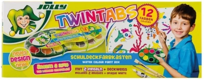 Acuarele Jolly Twintabs sunt ideale pentru dezvoltarea creativității copiilor. Datorită paletei extensibile și culorilor pastel, care pot fi ușor amestecate, crearea operelor de artă este o joacă pentru copiii de la 3 ani.