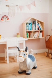 Suprafața plăcută, moale și forma stabilă a măgărușului săltăreț invită la joacă și îi ajută pe copii să-și mențină echilibrul. Înălțimea confortabilă a șeii de 28 cm ușurează urcarea.