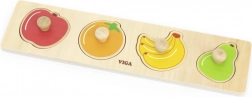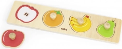 Lemnul pictat rezistent și marginile netede asigură joaca în siguranță. Puzzle-ul îi ajută pe copii să învețe culorile, formele și denumirile fructelor într-un mod distractiv. O alegere excelentă pentru acasă și pentru grădinițe.