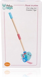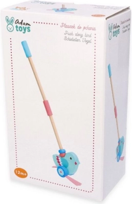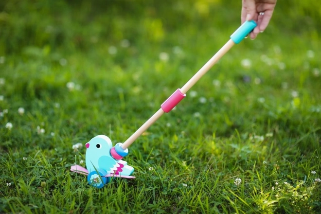 Această frumoasă păsărică din lemn de împins este proiectată pentru a ajuta copiii de la 12 luni să își dezvolte abilitățile motorii și de echilibru. Datorită bastonului detașabil, care ajunge la o lungime de 48 cm, jucăria este ușor de împins și manevrat. Designul general combină un corp turcoaz și aripi roz, stimulând imaginația și simțul culorilor la copii.